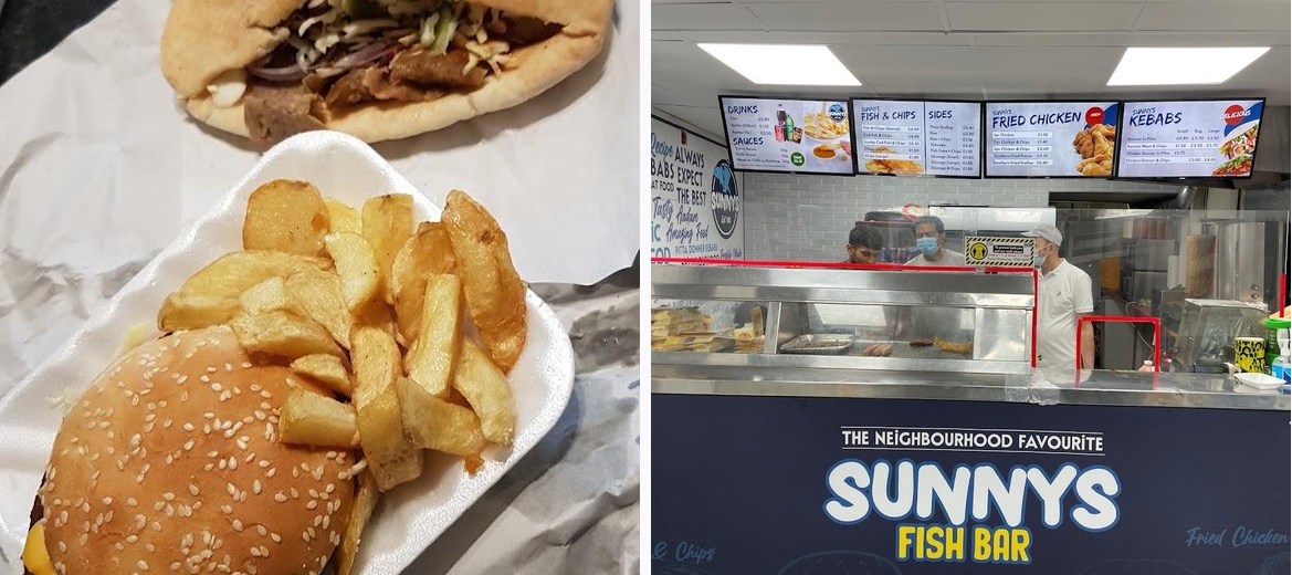 Sunny's Fish Bar specializes in fast food, focusing on classic fish and chips. The menu also includes donner kebabs and a variety of fried chicken options.